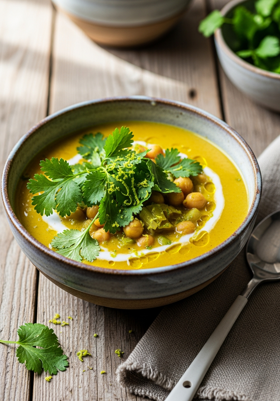 Cette soupe printanière marie la douceur des poireaux fondants à la rondeur du lait de coco et aux épices chaleureuses. Les pois chiches apportent corps et protéines, tandis que le citron vert réveille l’ensemble d’une fraîcheur vive. Un bol parfumé, simple et profondément réconfortant.